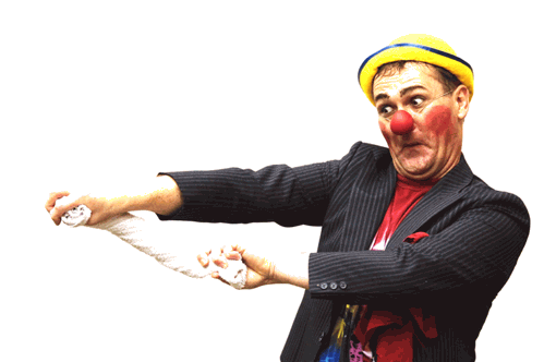 kinder­clown elfo odil, muskel­clown clown otto